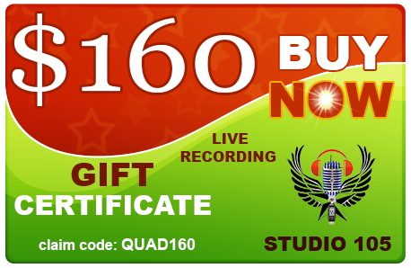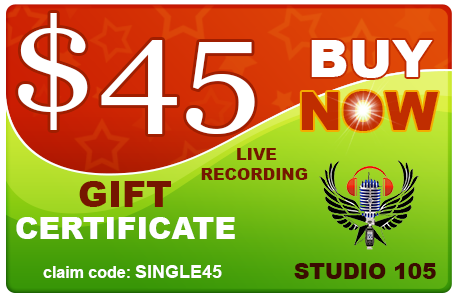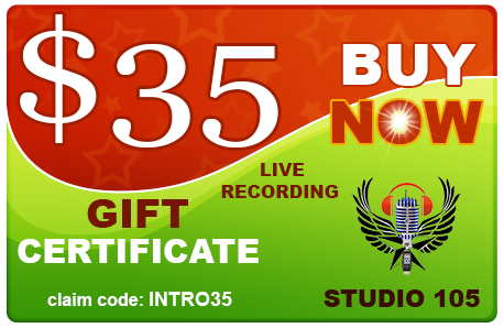 It's really that simple! The amount of the Gift Certificate will be automatically deducted from your studio service total. If your total is LESS than the Gift Certificate amount, you will have an "in-studio credit" at Studio 105 Recording for the remaining balance that you can use at a later date. Your "Gift Certificate" will continue to be valid until six months from purchase date has expired. Important Certificate Details